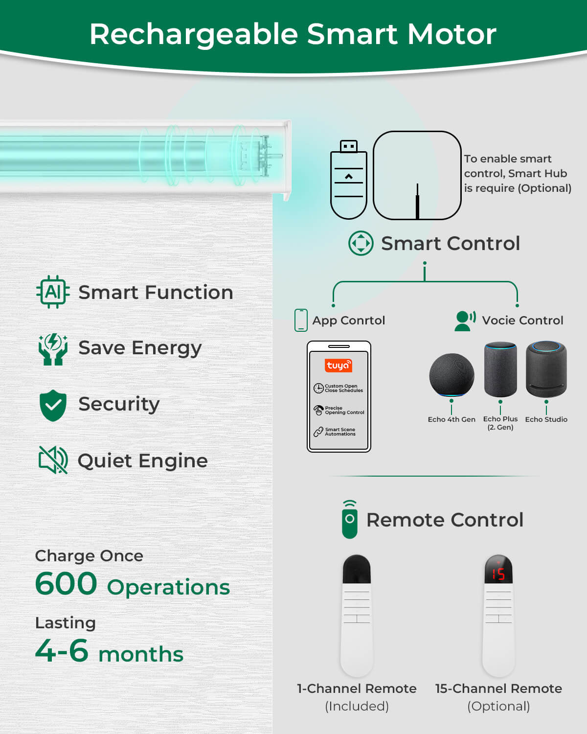 Allesin Motorized Blackout Roller Shades | Drill Needed | Standard Sizes